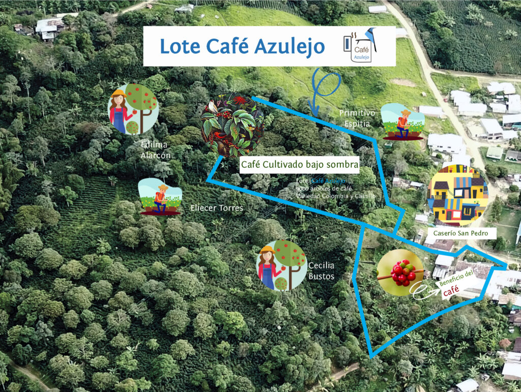 Nuestra finca La Jazminia se encuentra ubicada en la vereda San Pedro Tolima. Contamos con trabajo desde el origen, manejamos buenas prácticas agro ecológicas. El café Azulejo usualmente es secado lentamente en marquesina o sarzo. Lo que asegura el proceso de secado naturalmente, evitando el sobre calentamiento y el daño de la almendra.