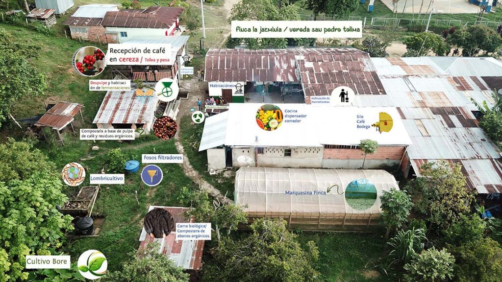 Tenemos una alianza con la Asociación Café Frutos del bosque creada por campesinos de la región que se unieron por una causa común, mejorar sus condiciones de vida, ser mejores productores con buenas prácticas agroecológicas, y crecer como Asociación de la región. En total contamos con 38 productores actuales. Muchos de ellos certificados Rainforest, 4C, Regional Tolima, Best Practice (Actualmente).